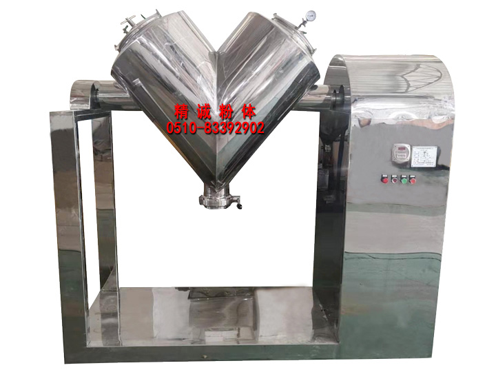 混料筒一般用不銹鋼制作,內外比拋光,結構設計上保證無積料死角,清洗方便徹底。筒體上部有兩個進料口,下部有一個出料口。桶體可用手轉動,以便于出料。另可帶強制攪拌裝置,有利于一些特殊物料的充分混合,或者可以附帶加濕裝置,改善噴霧造粒后的粉體的含水率。