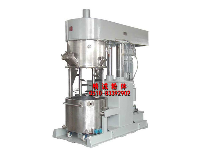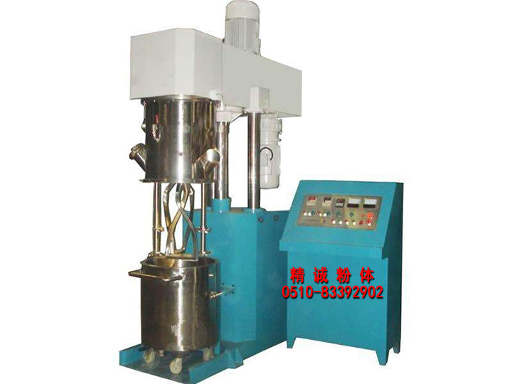 由攪拌桶、攪拌蓋、攪拌動力頭(含兩組低速攪拌槳、兩組高速分散器及一組刮壁槳)、溫控裝置、升降裝置、鎖桶裝置及控制系統(tǒng)等組成。